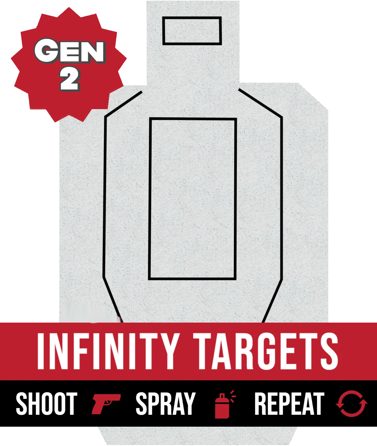 Infinity Defence have brought us one of the biggest innovations in target technology since the introduction of AR500 Steel targets! These targets provide the look of shooting steel while being point blank safe and weighing much less! With a lifespan of thousands of rounds, just spray over your shots and shoot again!